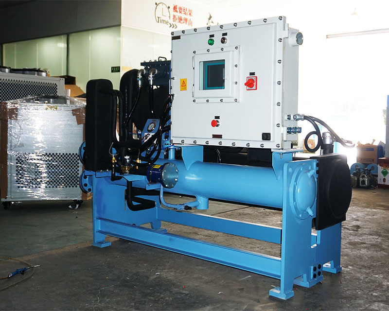 由于冷水機(jī)組有時(shí)候經(jīng)常會(huì)用于一些有易燃粉塵,氣體或者化工領(lǐng)域。此時(shí)冷水機(jī)為了安全的需要在電控、電機(jī)、風(fēng)機(jī)等地方做防爆處理。